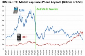 For some companies such as Palm and Motorola (NYSE:MMI), the disaster began at the first moment when iPhone was released. For others, such as Nokia (NYSE:NOK), the decrease in market share took longer.